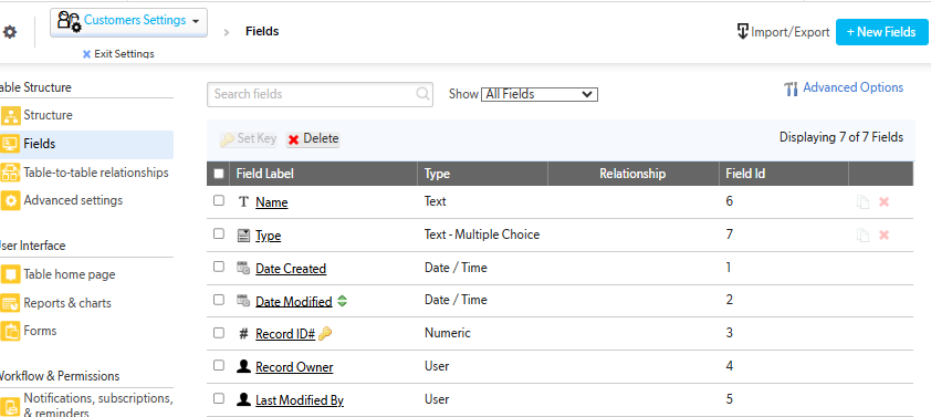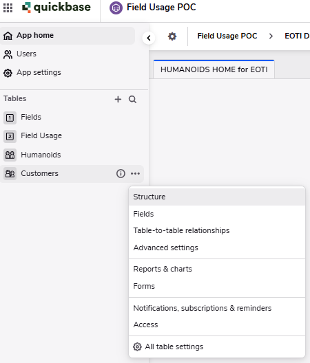 The following steps outline one of several methods of creating fields within Quickbase. The method described here uses the current Quickbase UI with Side Navigation enabled.